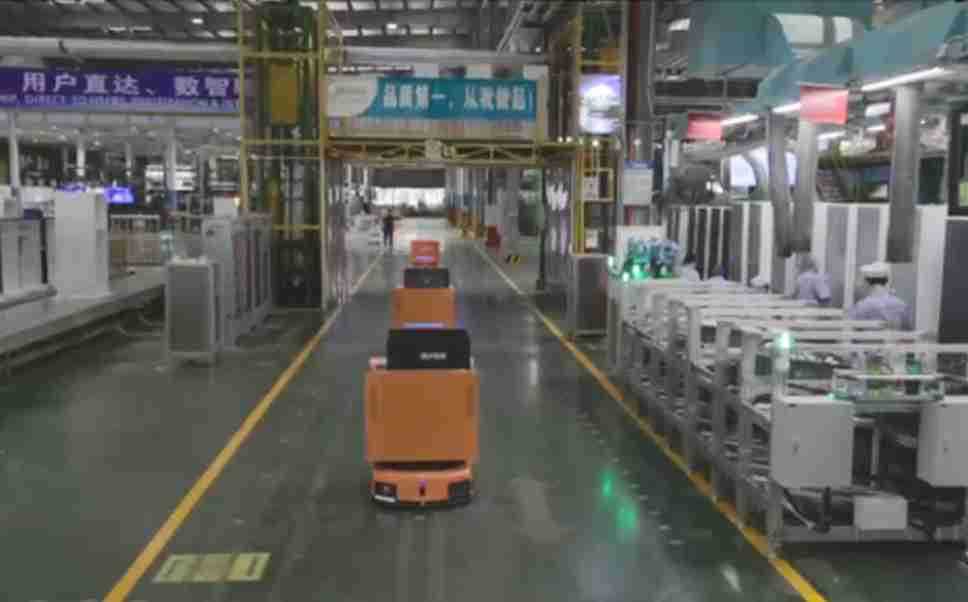 为车载冰箱物流配送打造的智能解决方案,,包含产中物流通过潜伏举升AMR搬运至线边,,,,产后成品物流智能仓储,,,,流程包含产中物流智能齐套入库,,,,线边安灯叫料AMR智能配送至线边,,,成品入库、、、、出库,,通过无人堆高车机器人,,智能仓储管理替代人工作业管理,,,,实现更高存储、、、更高效率、、、更具柔性化的解决方案。。。。