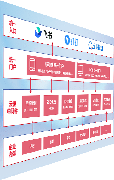 对协作平台提供支持服务,,,支持企业应用与协作平台对接,,,,包含组织同步、、、、消息集成、、、、待办集成等。。支持目前主流的协作平台:钉钉、、企微和飞书。。。